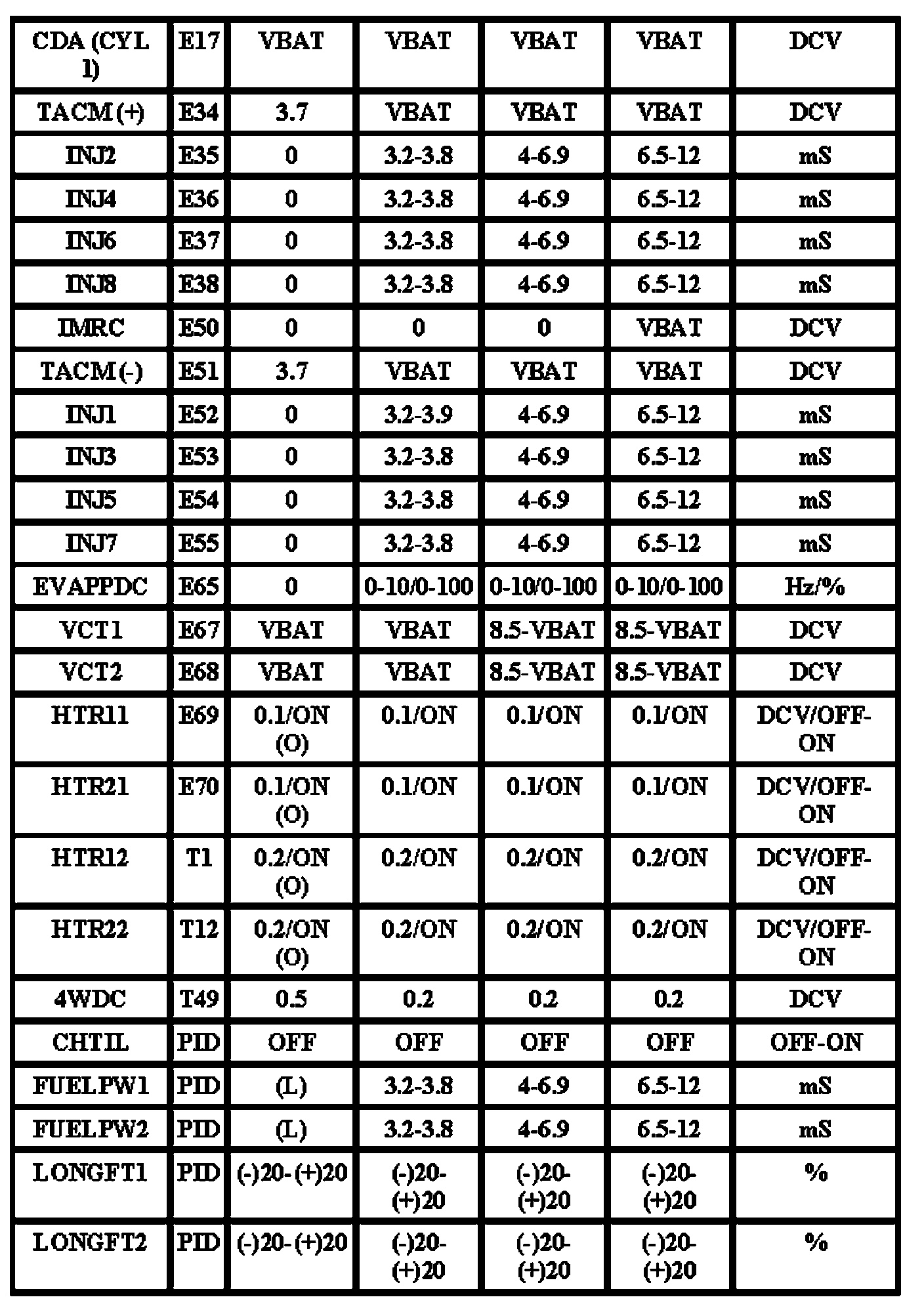 Note: All generic OBD readings under no load (PARK or NEUTRAL).