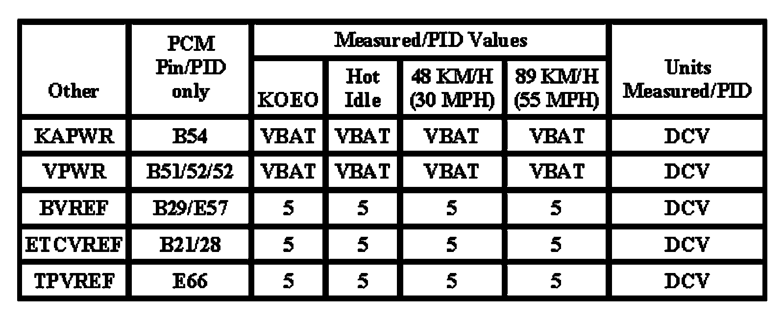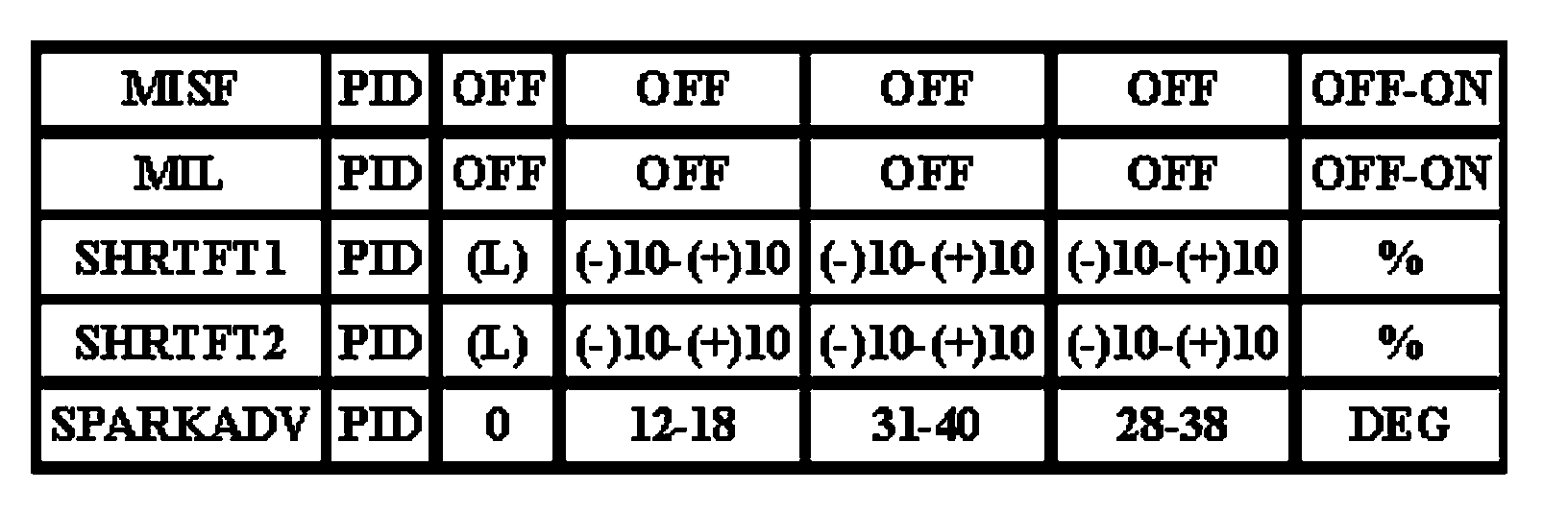 The Typical Diagnostic Reference Value Charts do not display fault PIDs. These are PIDs which indicate a hard fault with the circuit. They display a value of "YES" or "NO" and are PIDs ending with an "F".