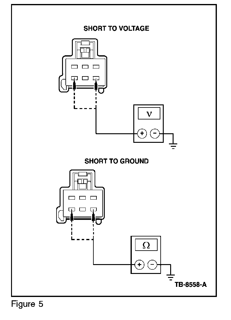 11. With DCCSM C3265B disconnected, check for a short circuit (short to voltage is less than 0.2 volts, short to ground is resistance less than 10,000 ohms) in the wiring from the TED that is not reading the over-temp to the CCSM. If no short circuit is found, then replace the TED. (Figure 5)