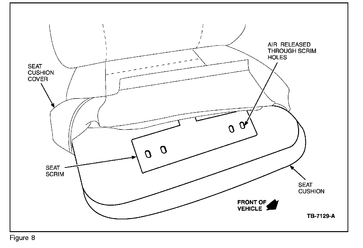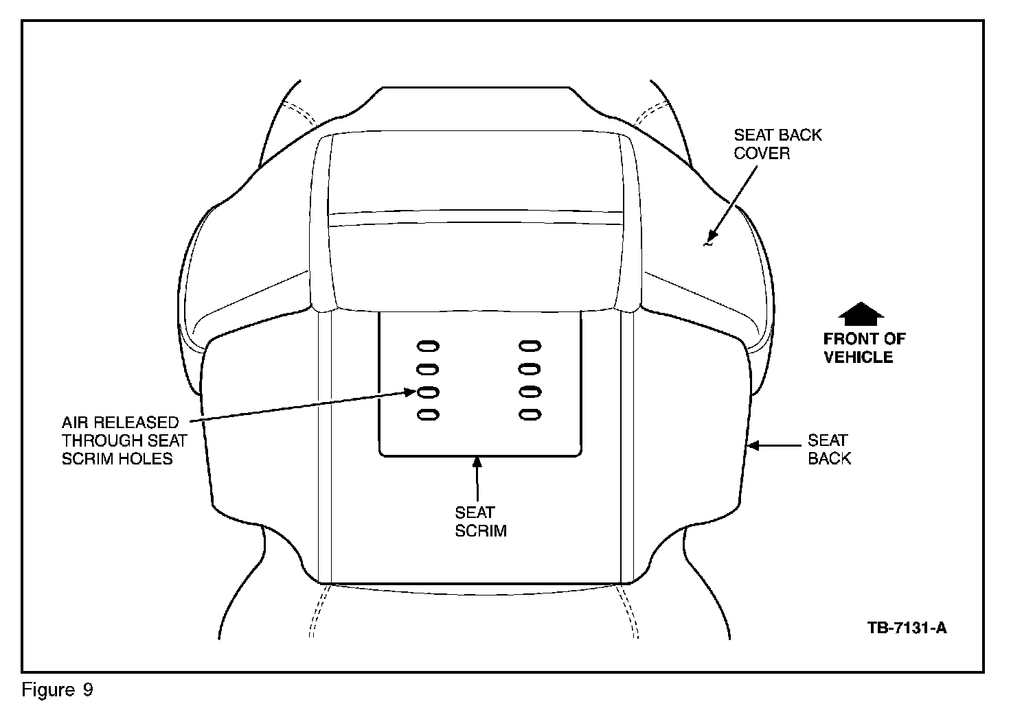16. Check if the seat back/cushions are damaged or the scrim (Figures 8 and 9) has been obstructed or damaged or bunched in the cushion blocking air flow from the TED.