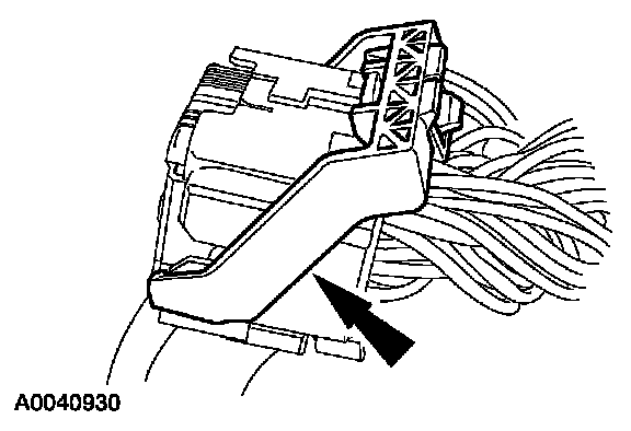 2 While releasing the retaining tab, pull out and disconnect the small RCM electrical connector.