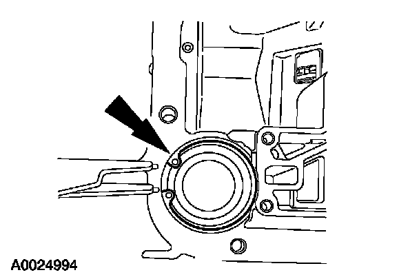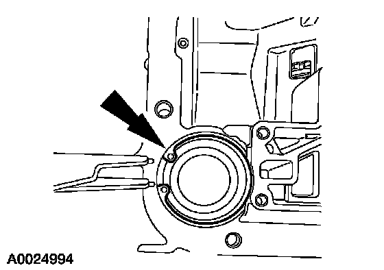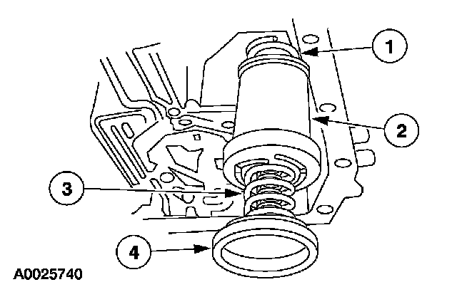 3. Compress the 1-2 accumulator piston and remove the accumulator piston retaining ring.