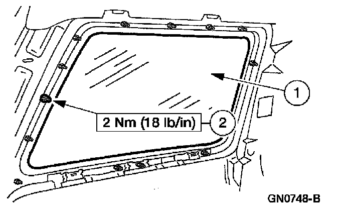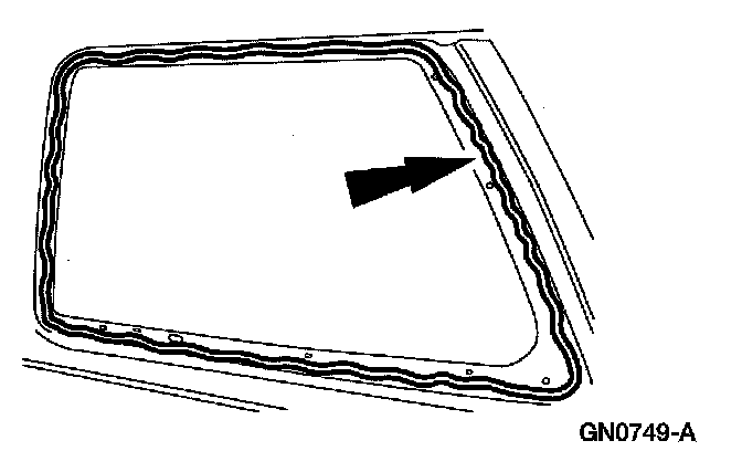 1. Apply 8 mm (0.32 in) Foam Butyl of equivalent meeting Ford specification WSB-M4GB45-A to the rear quarter window glass frame.