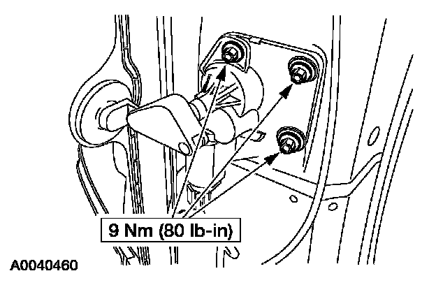 6. Install the bolts and rear quarter window regulator motor.