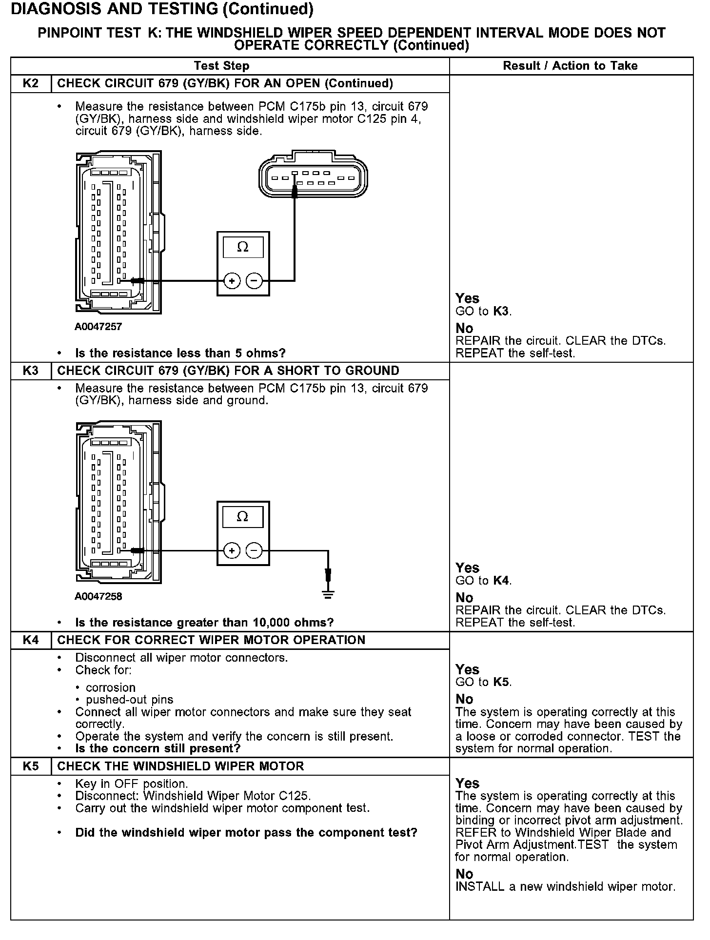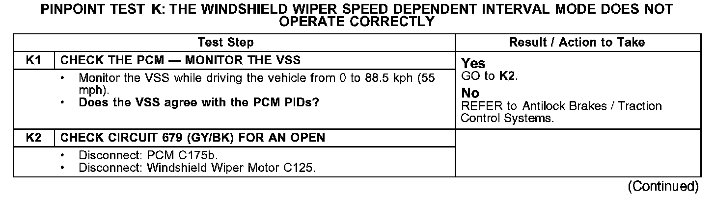 PINPOINT TEST K: THE WINDSHIELD WIPER SPEED DEPENDENT INTERVAL MODE DOES NOT OPERATE CORRECTLY