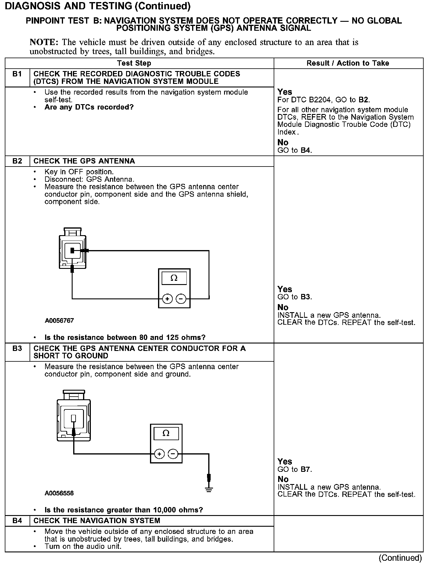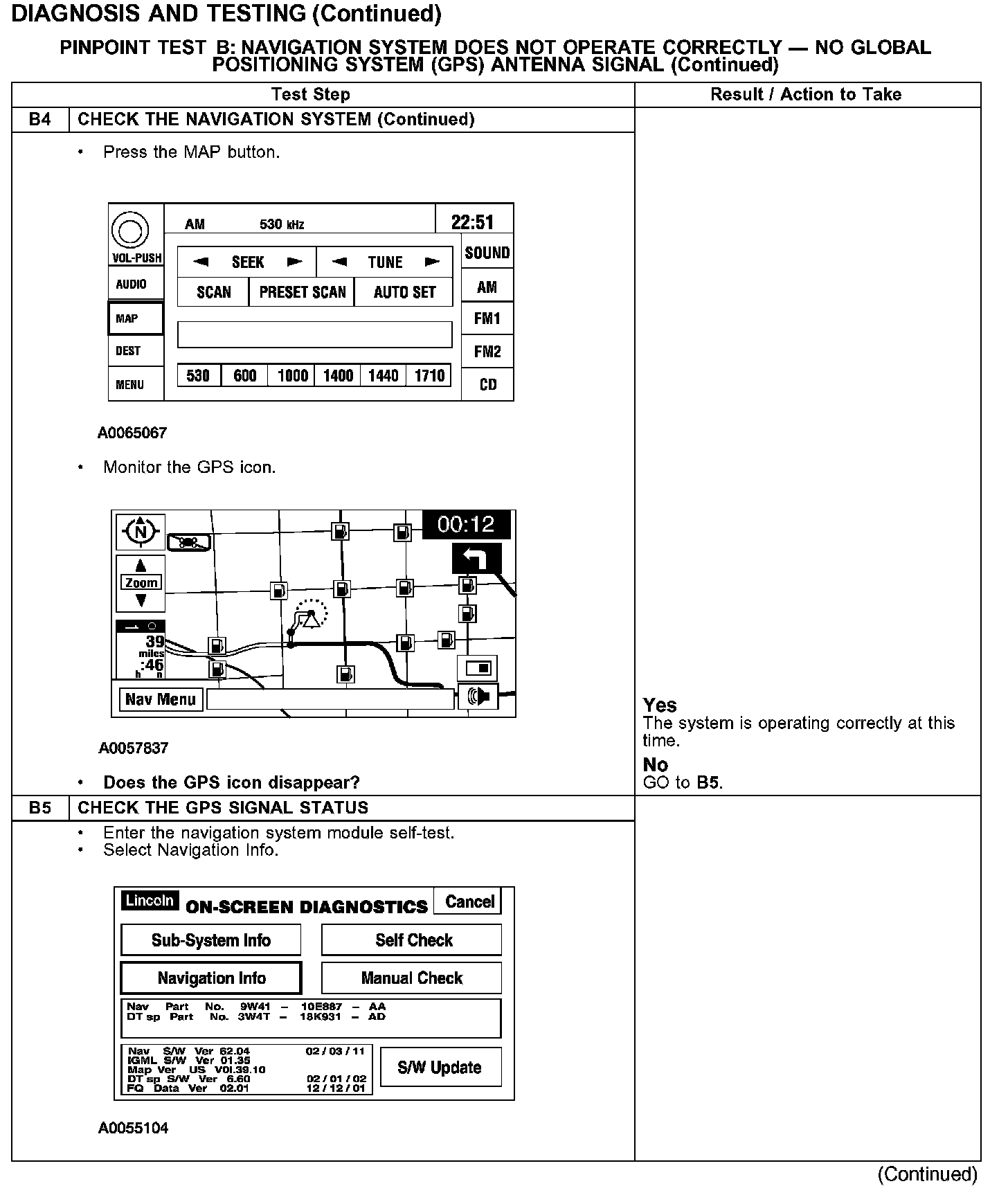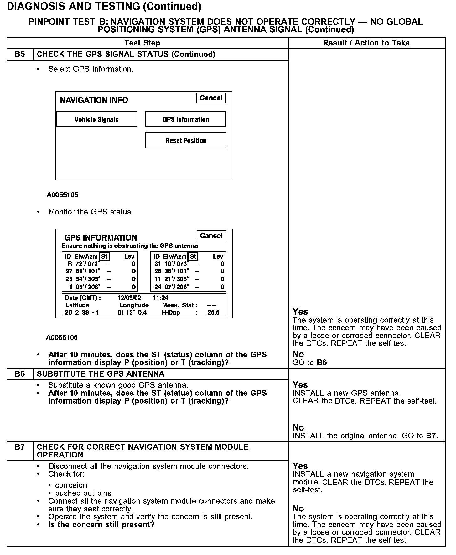Test B: Navigation System Does Not Operate Correctly - No Global Positioning System (GPS) Antenna Signal