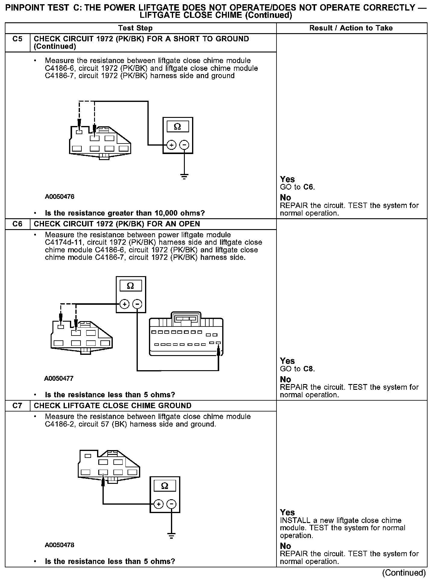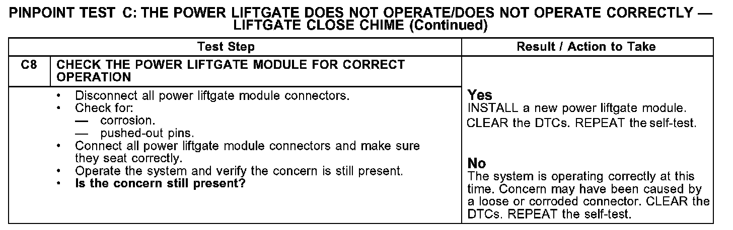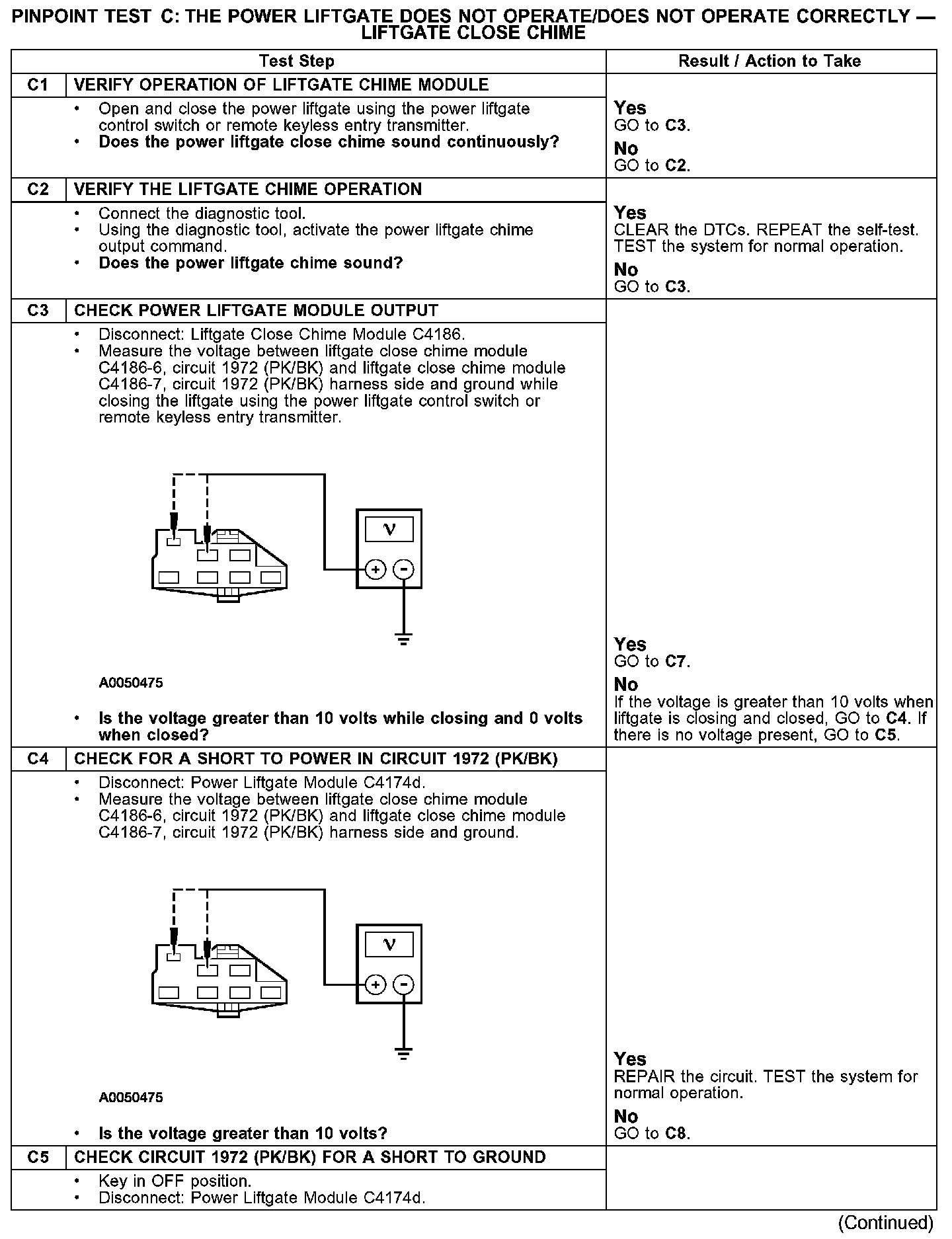 PINPOINT TEST C: THE POWER LIFTGATE DOES NOT OPERATE/DOES NOT OPERATE CORRECTLY - LIFTGATE CLOSE CHIME