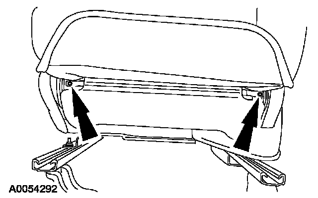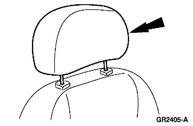 Reach up into seat backrest and squeeze the head restraint sleeve ends together to release the sleeves and pull the head restraint sleeves out.
