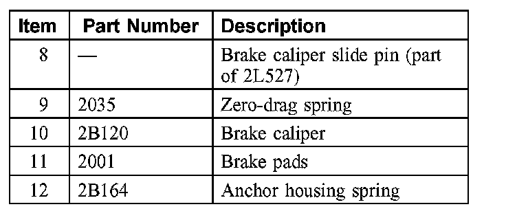 ^ held to the front disc brake caliper anchor plate abutments by disc brake anti-rattle clips.