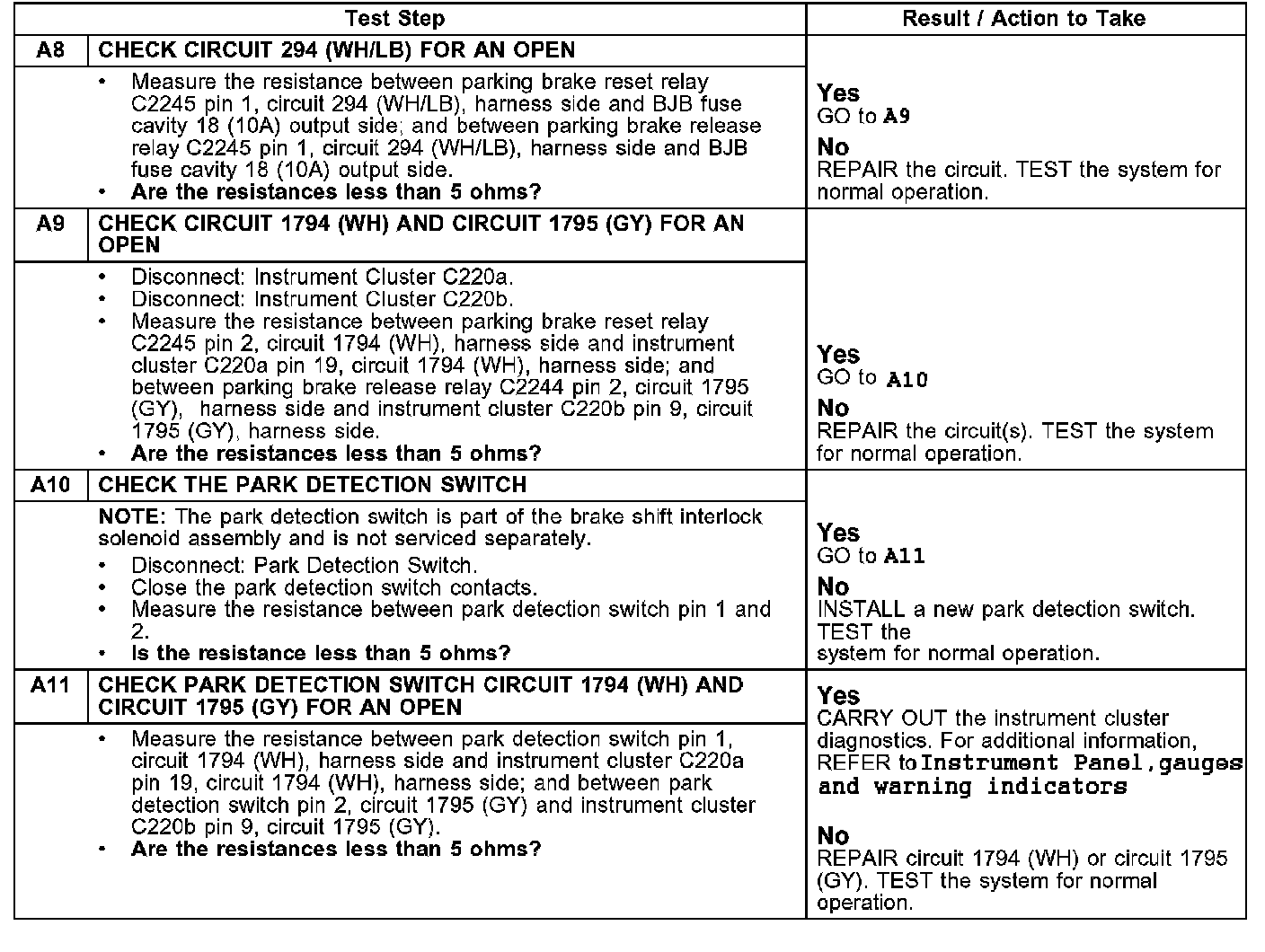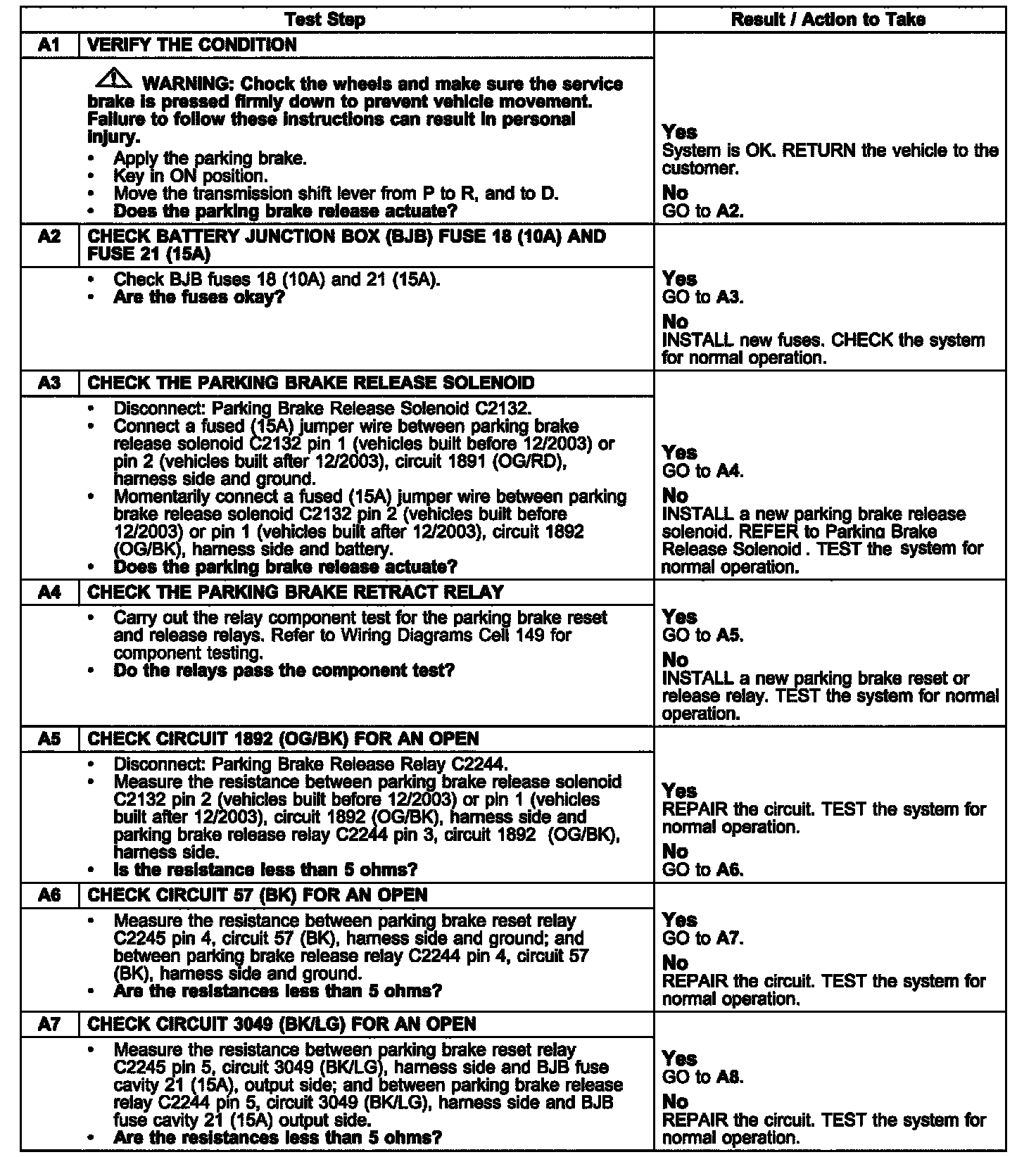 PINPOINT TEST A: AUTOMATIC PARKING BRAKE RELEASE DOES NOT OPERATE