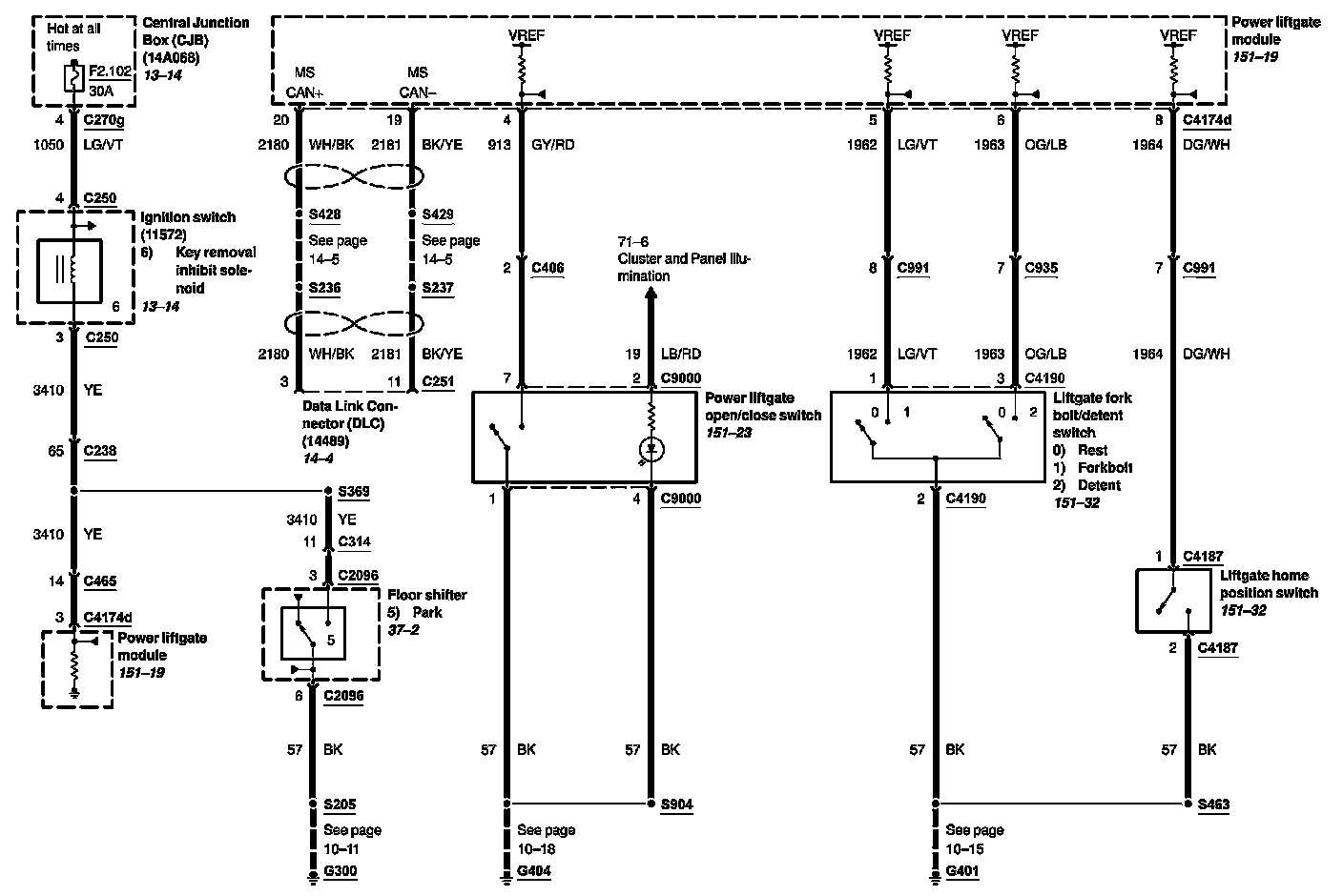 Locations: Location Views (reference numbers starting with 151-) referred to within these diagrams can be found at Component Location Views. Component Location Views