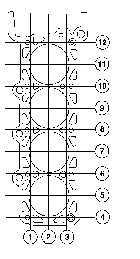 Using a straightedge and a feeler gauge, inspect the cylinder head for flatness in the sequence shown. If the cylinder head is distorted, install a new cylinder head.