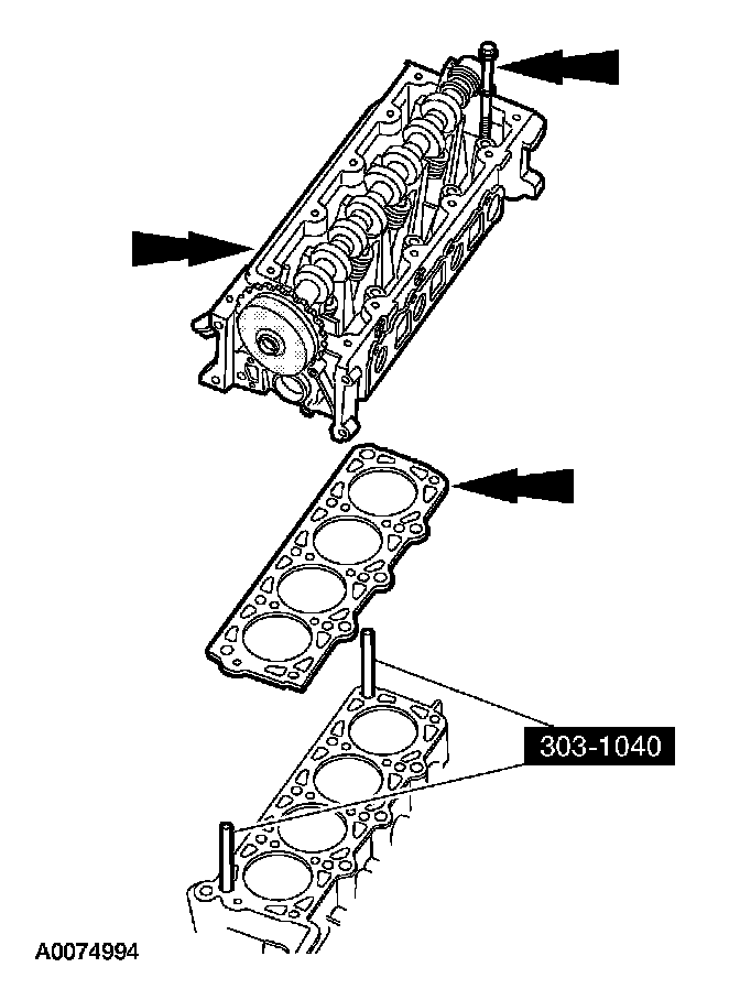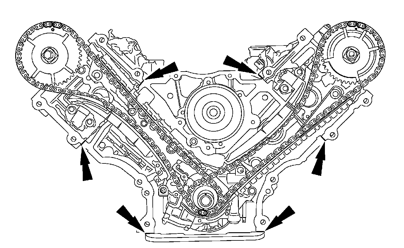 Apply a bead of silicone gasket and sealant along the cylinder head-to-cylinder block surface and the oil pan-to-cylinder block surface, at the locations shown.