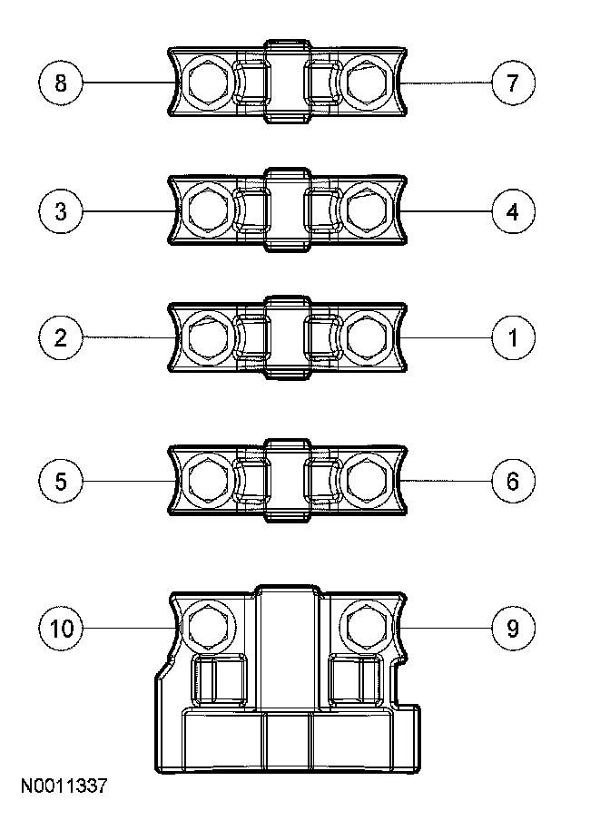 Stage 2: Tighten fasteners 6 and 7 to 48 Nm (35 ft. lbs.).