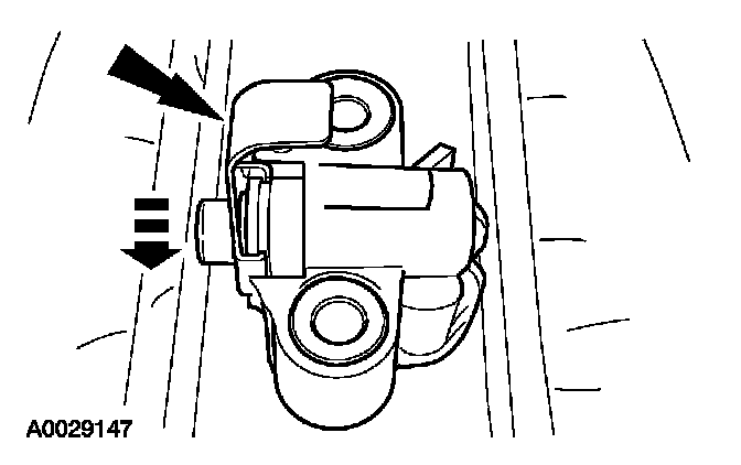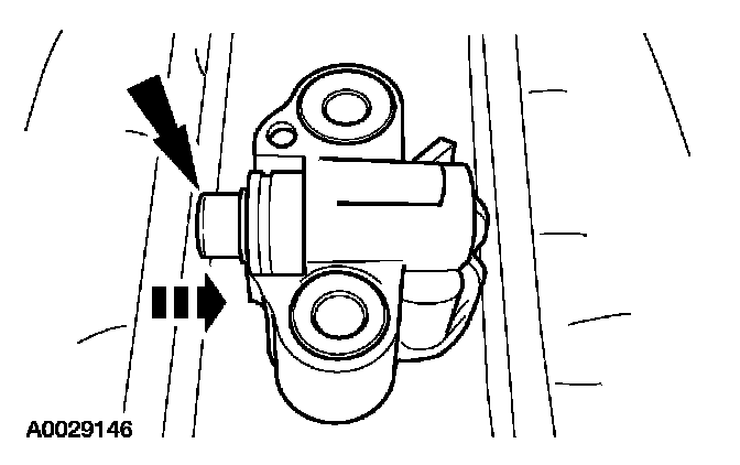 15. Install a retaining clip on the tensioner to hold the plunger in during installation.