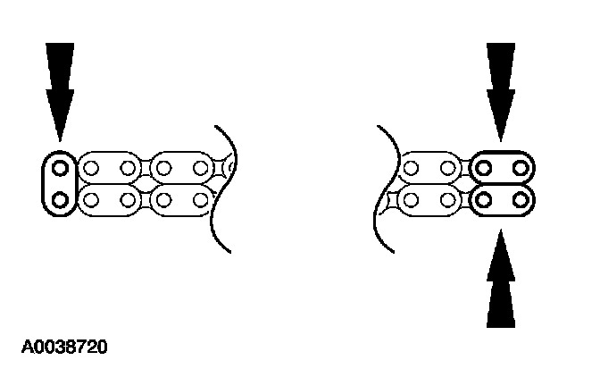 17. If the copper links are not visible, mark two links on one end and one link on the other end, and use as timing marks.