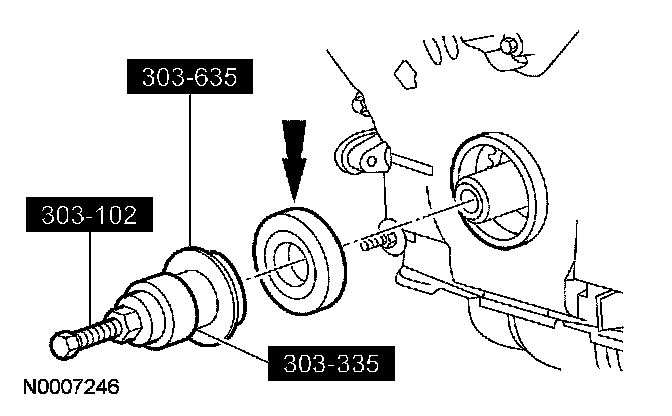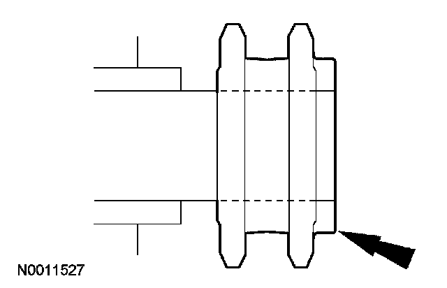 CAUTION: Prior to installation, inspect the tensioner-sealing bead for seal integrity. If cracks, tears, separation from the tensioner body or permanent compression of the seal bead is observed, install a new tensioner.