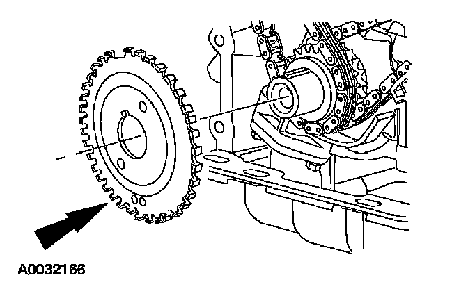 12. CAUTION: Damage to the camshaft phaser sprocket assembly will occur if mishandled or used as a lifting or leveraging device.