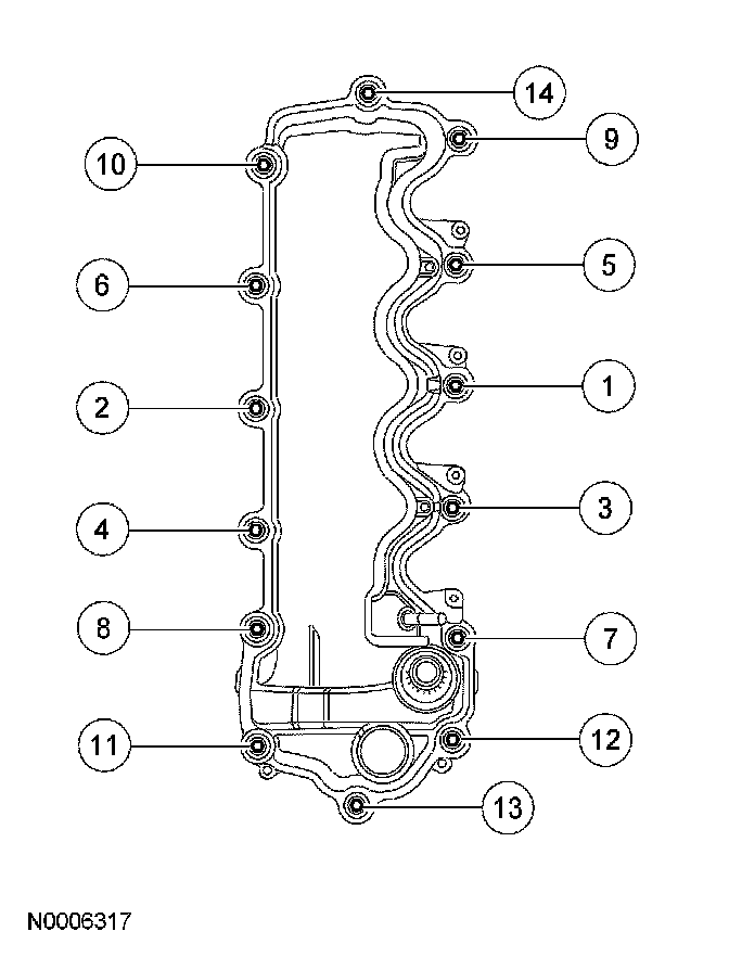 Position the LH valve cover and gasket on the cylinder head and tighten the bolts in the sequence shown.