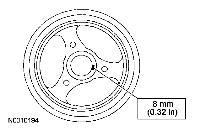 13. CAUTION: Damage to the camshaft phaser sprocket assembly will occur if mishandled or used as a lifting or leveraging device.