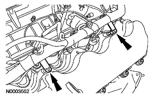 63. Connect the 2 engine wiring harness retainers from the RH valve cover studs.