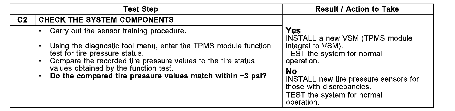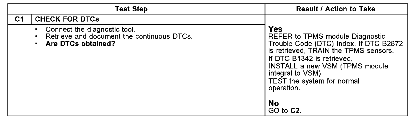 Test C: Message Center Displays Tire Pressure Sensor/Monitor Fault