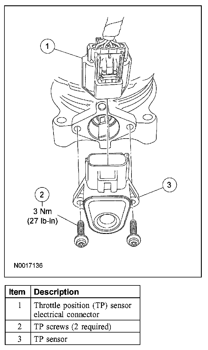 NOTE: When installing the new TP sensor, make sure that the radial locator tab on the TP sensor is aligned with the radial locator hole on the throttle body.