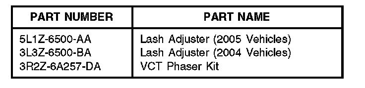 Some 2004 F-150 and 2005 F-150, Expedition, Navigator, F-Super Duty, and Mustang vehicles may have a rattle on startup that lasts 1 to 3 seconds. If initial pre-checks have been completed and the noise sounds like it is coming from the front of the engine, replace the VCT Phaser Kit. If the engine continues to make the rattle noise after the initial startup do not exchange VCT.