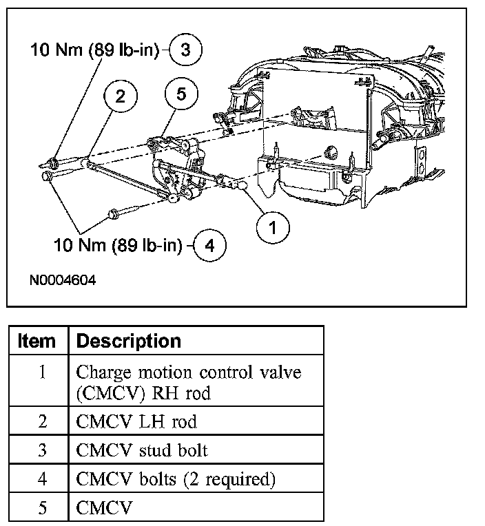 2. Disconnect the charge motion control valve (CMCV) RH and LH rods from the intake manifold.