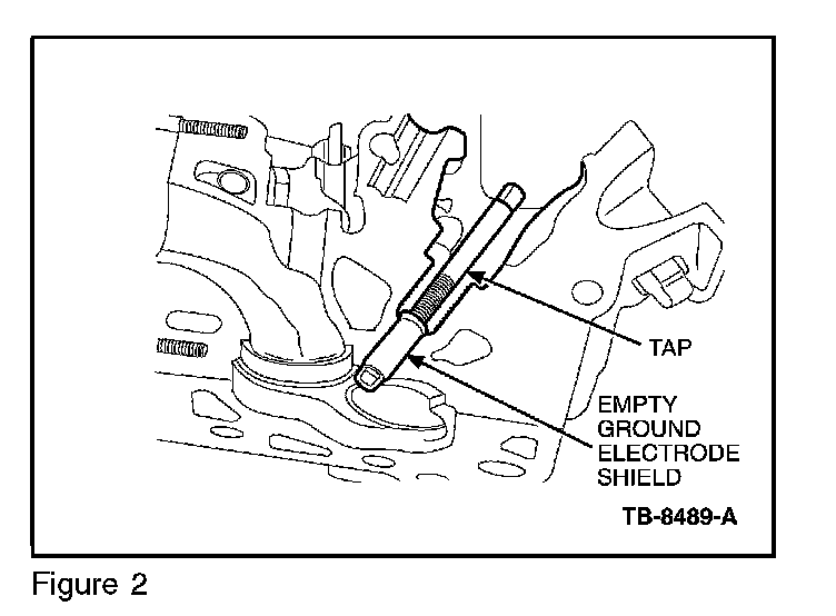 DO NOT ATTEMPT TO REMOVE THE GROUND ELECTRODE SHIELD WITH THE TAP AND WRENCH. THE TAP MAY BREAK IF THIS IS ATTEMPTED.