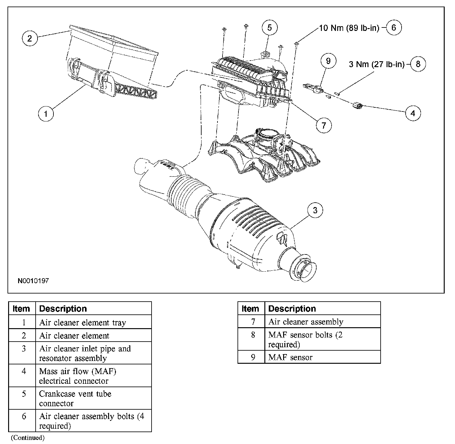 5. If servicing the air cleaner housing, remove the 2 bolts and the MAF sensor.
