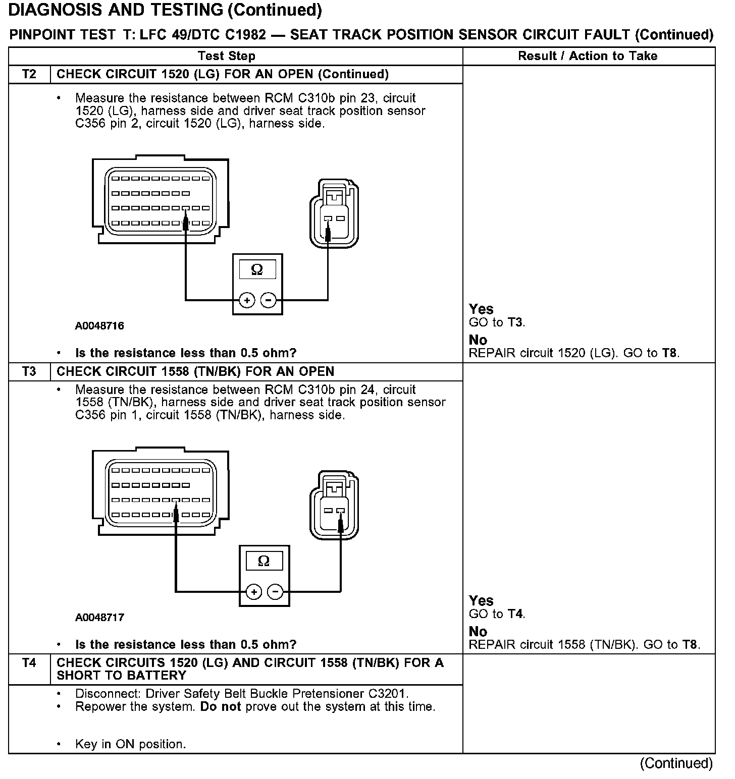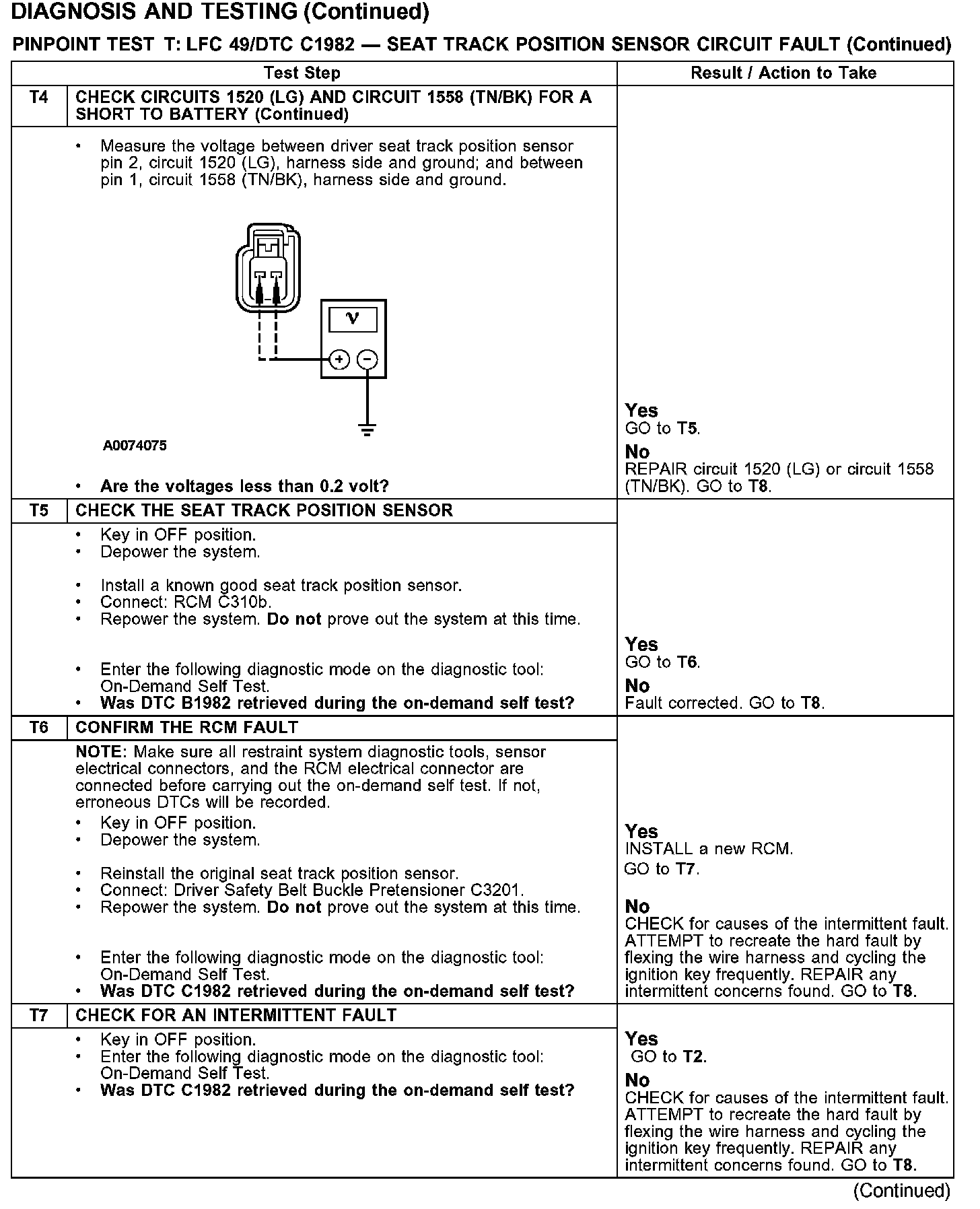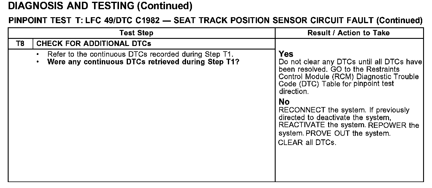 Test T: LFC 49/DTC C1981 - Seat Track Position Sensor Circuit Fault