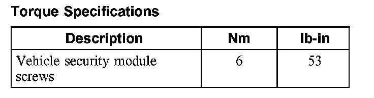 Torque Specifications: