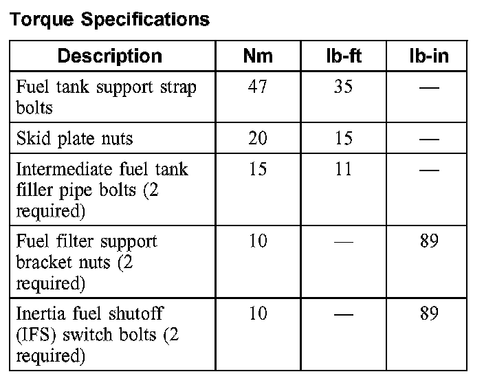 Torque Specdifications: