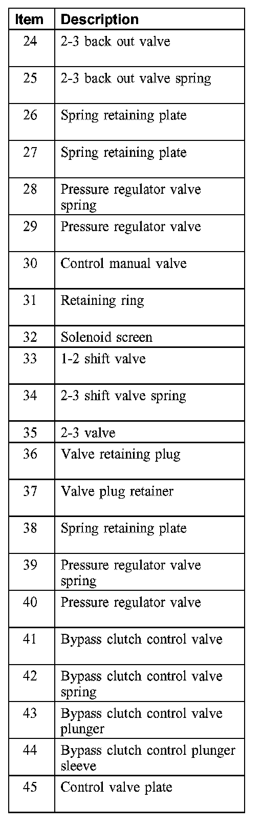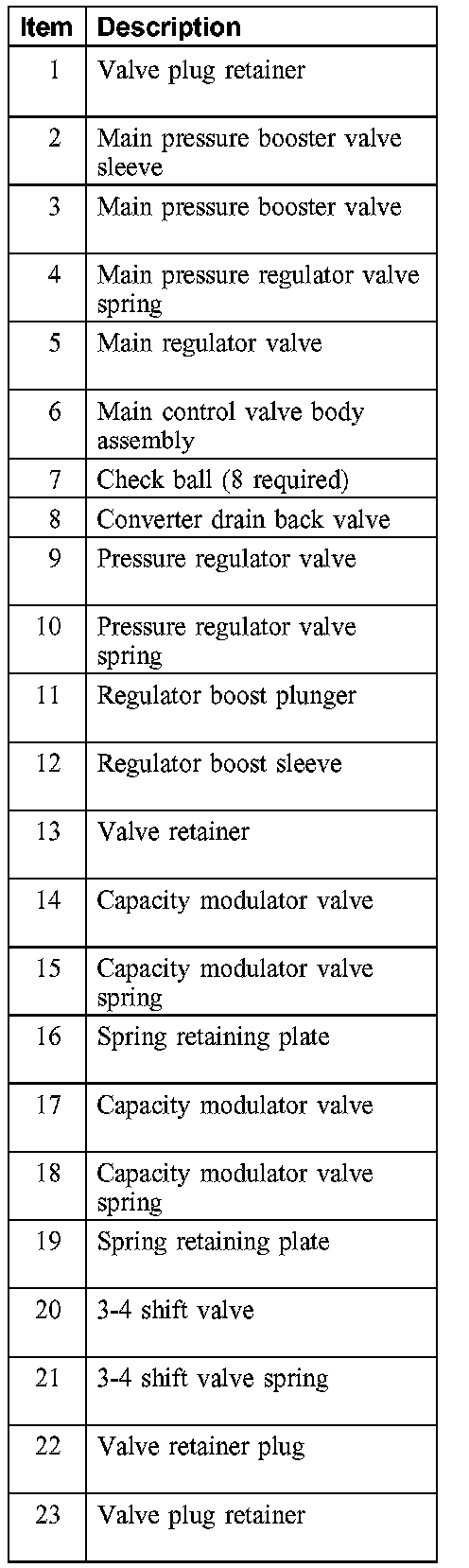 Main Control Valve Body Disassembled View