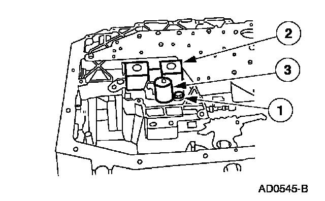1. Remove the Torque Converter Clutch (TCC) solenoid and the shift solenoid.