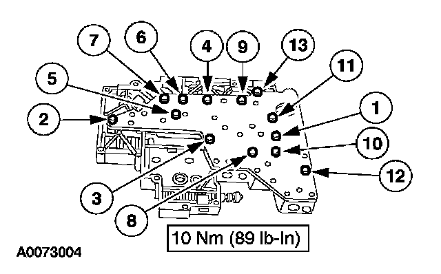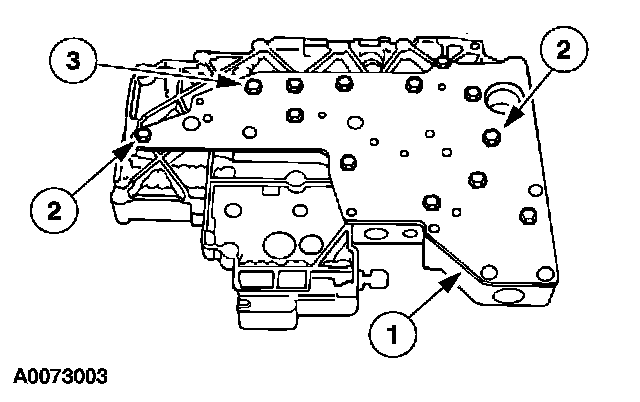1 Remove the 13 main control valve body cover plate bolts.