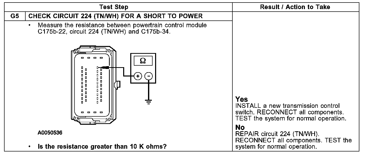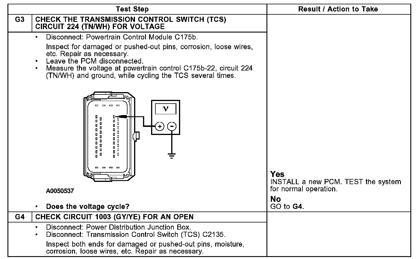 Test G: The Transmission Control Switch (TCS) Is Inoperative