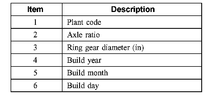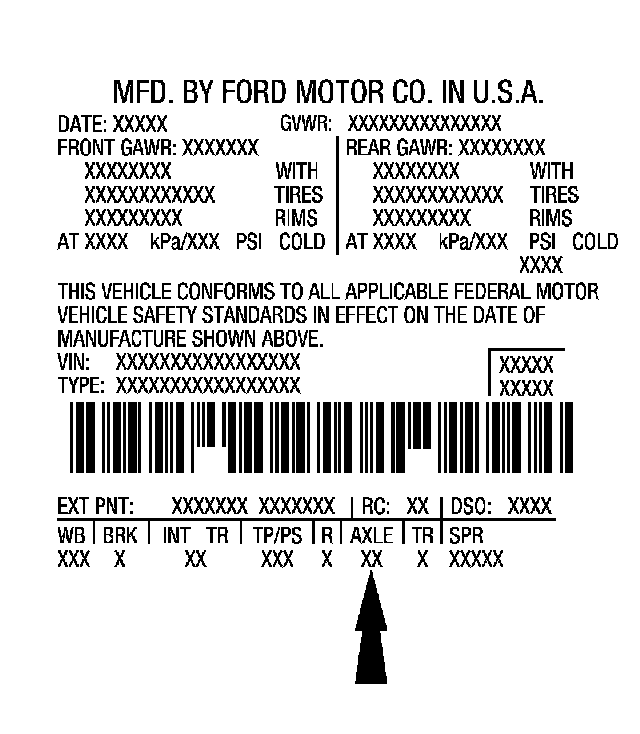 The Vehicle Certification (VC) label is located in the driver door jamb. The first 2 digits of the axle code indicate the rear axle and the 3rd digit refers to the front axle, if so equipped.