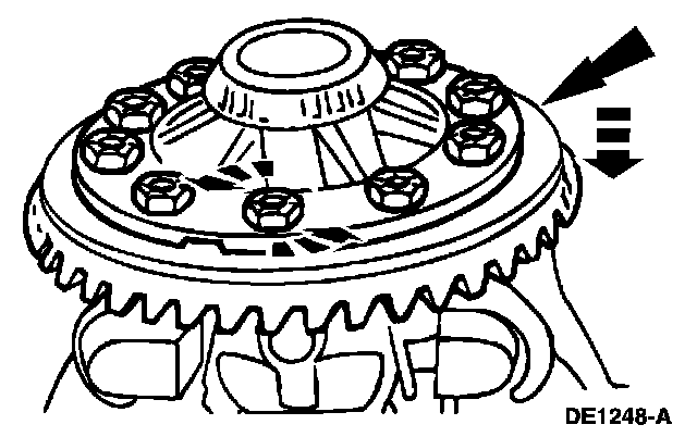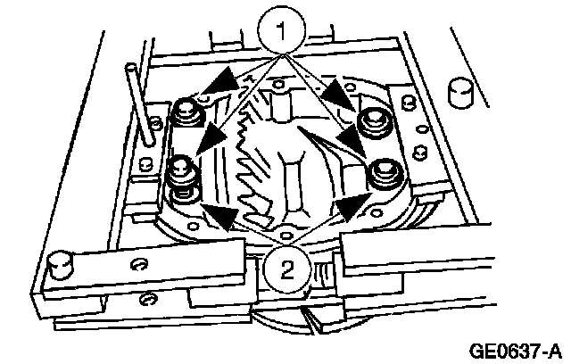 10. CAUTION: Mark the differential bearing caps Top or Bottom and LH or RH appropriately before removing them. Always install the bearing caps in their original place and position.