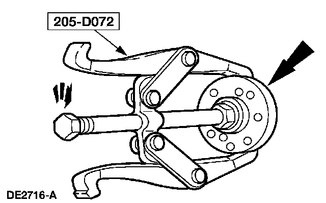 14. With the pinion nut still engaged by a few threads, use the special tool to separate the axle universal joint flange from the pinion gear.