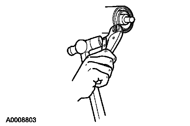 ^ Pry up on the seal flange. Install gripping pliers, and strike with a hammer to remove the seal.
