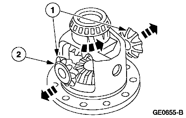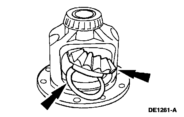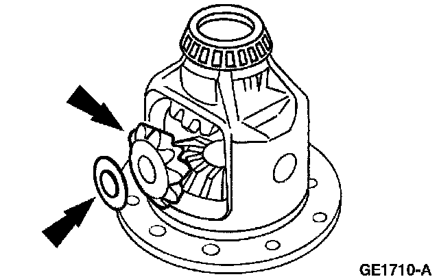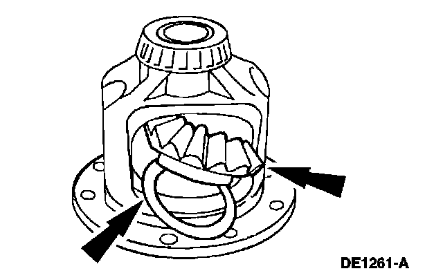 1. Lubricate the differential side gear thrust washers and the differential side gear journals with axle lubricant.