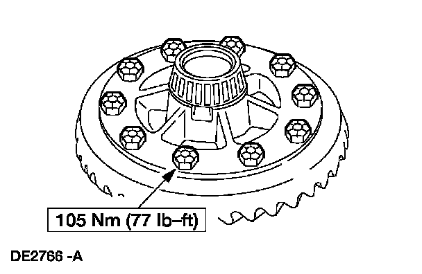 1 Position three bolts to align the holes in the ring gear and the differential case.