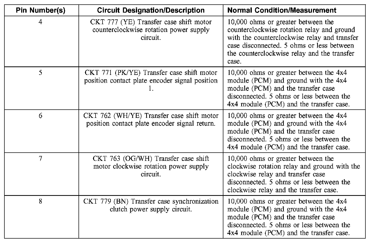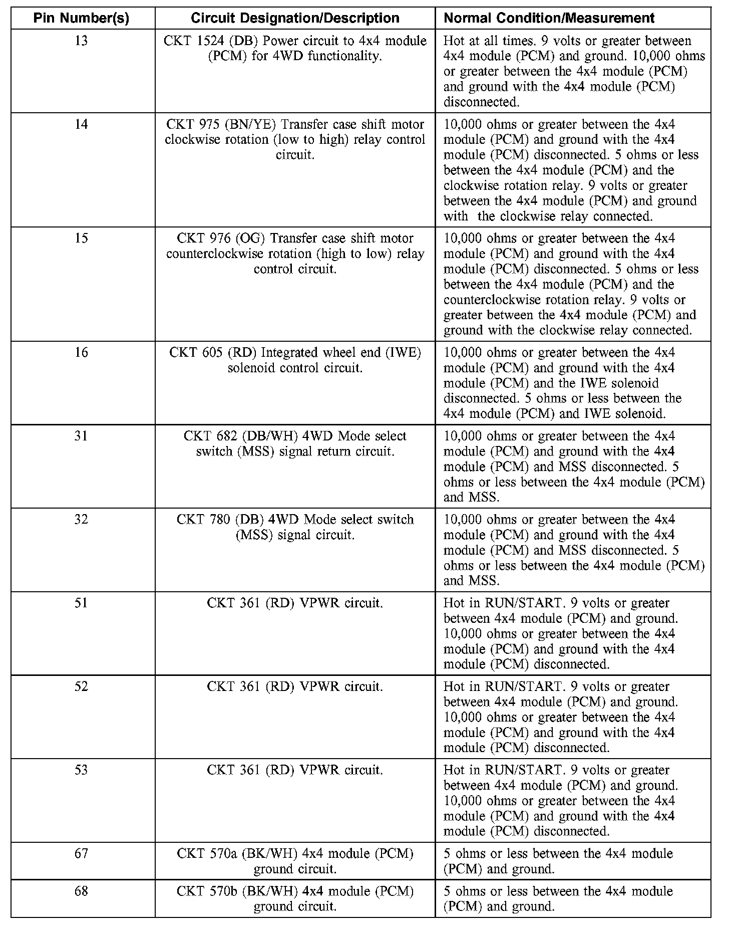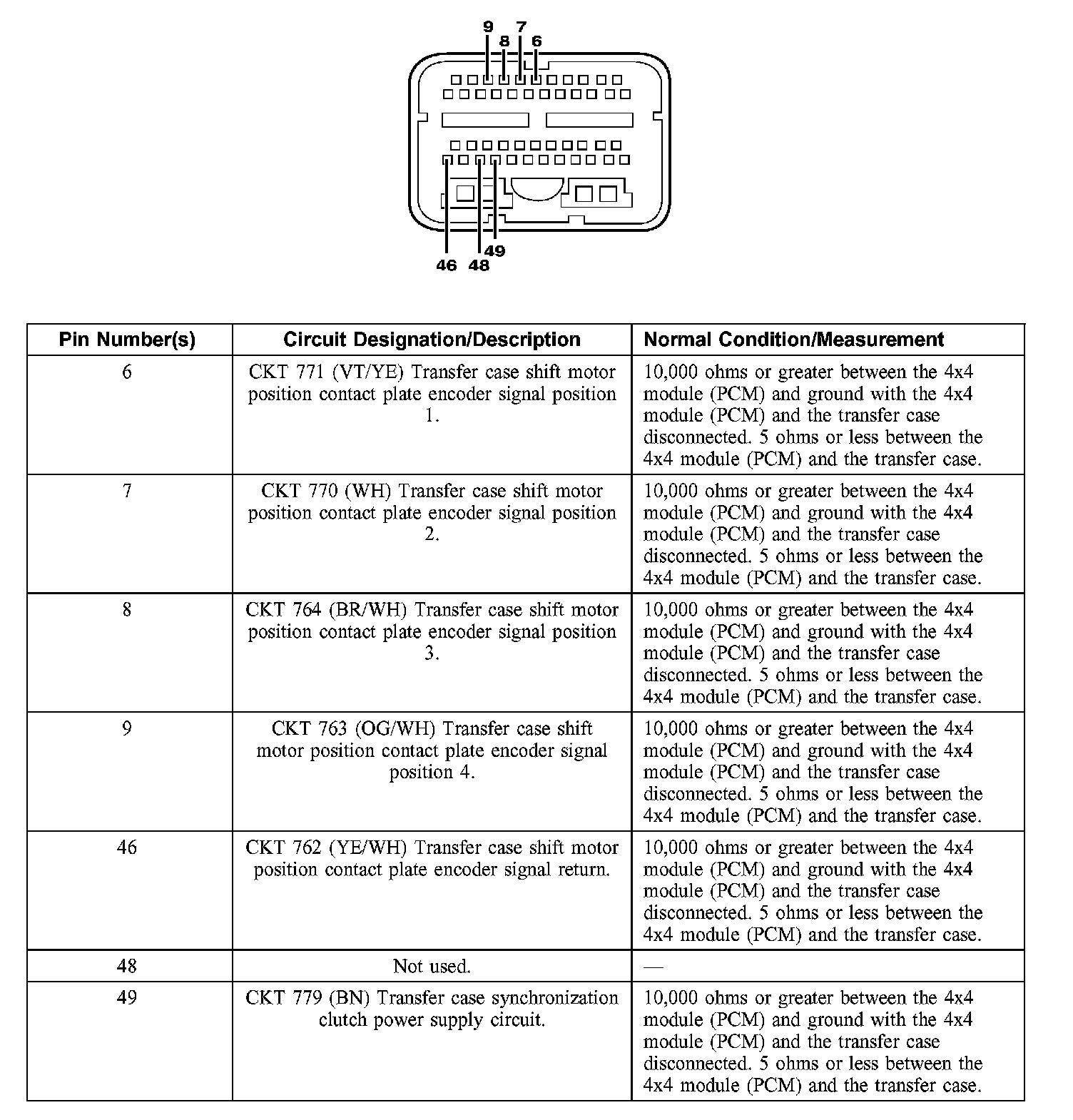 Connector Circuit Reference4x4 Module (PCM) C175b (Body)