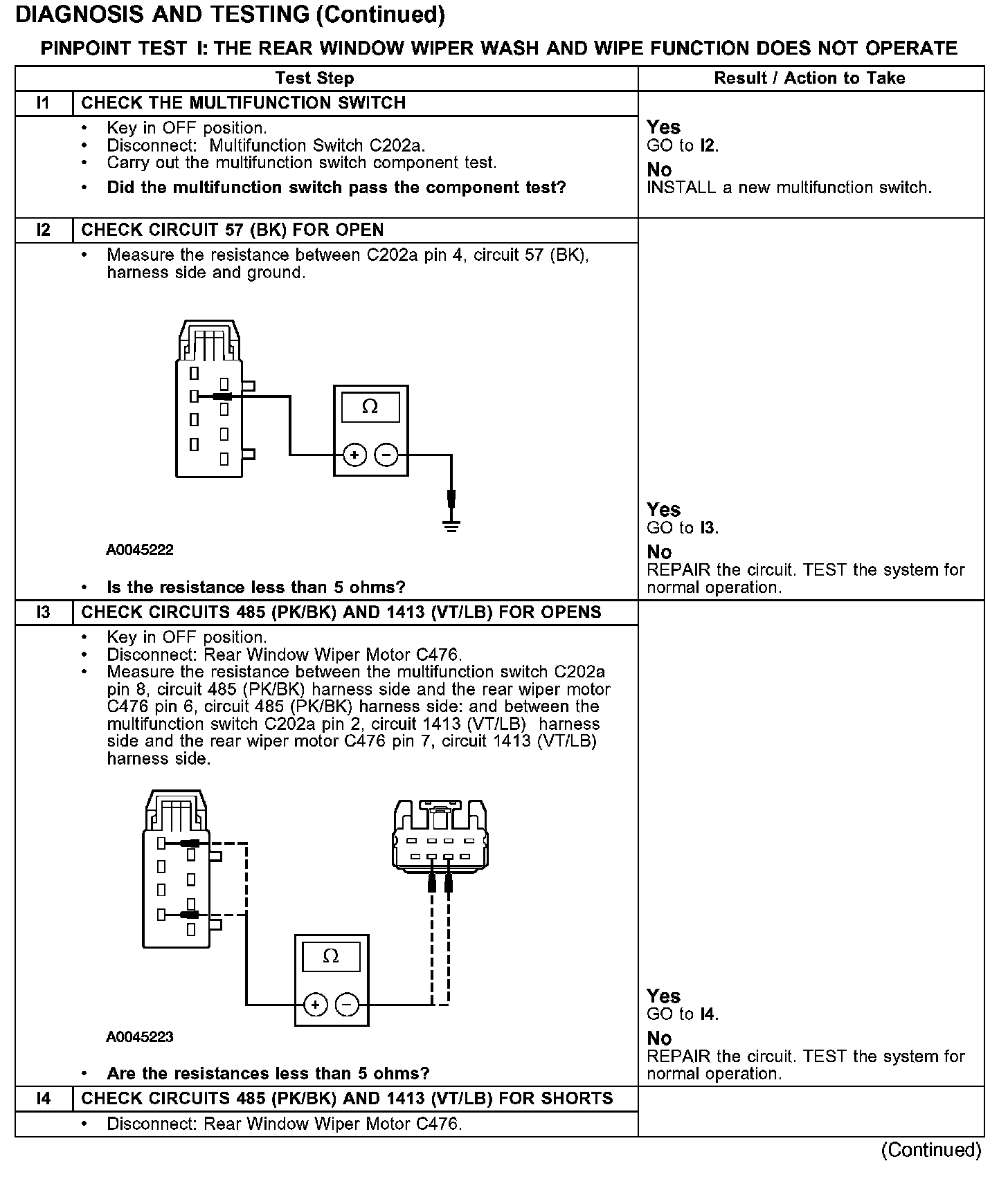 PINPOINT TEST I: THE REAR WINDOW WIPER WASH AND WIPE FUNCTION DOES NOT OPERATE