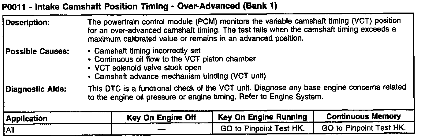 P0011 - Intake Camshaft Position Timing - Over-Advanced (Bank 1):