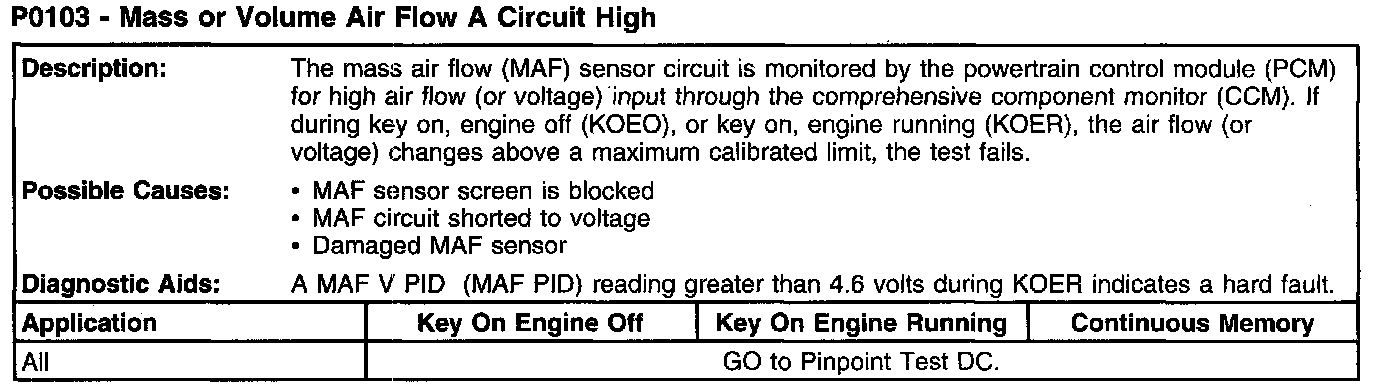 P0103 - Mass Or Volume Air Flow A Circuit High: