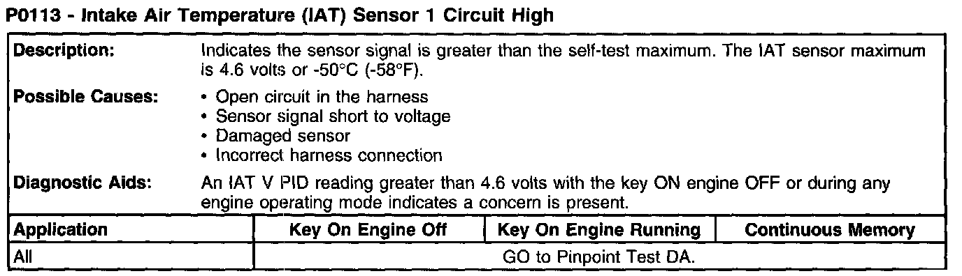 P0113 - Intake Air Temperature (IAT) Sensor 1 Circuit High: