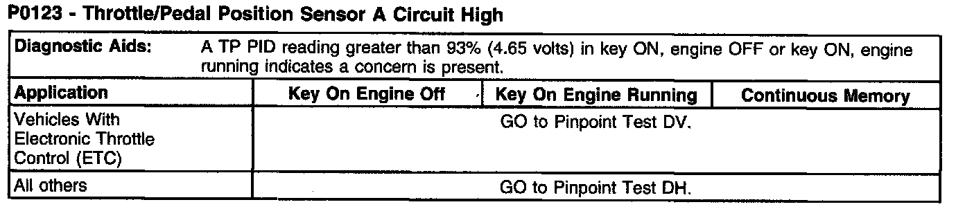 P0123 - Throttle/Pedal Position Sensor A Circuit High (Part 1):
